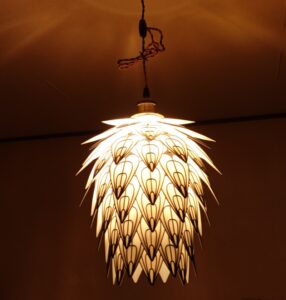 葉が織りなす繊細なデザインと、温かな光が融合したペンダントライト